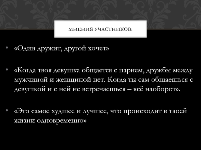 между мужчиной и женщиной нет. Когда ты сам общаешься с