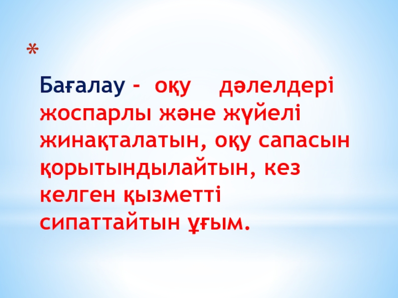 Слайд 5«Бағалау» сөзінің мағынасын ашу