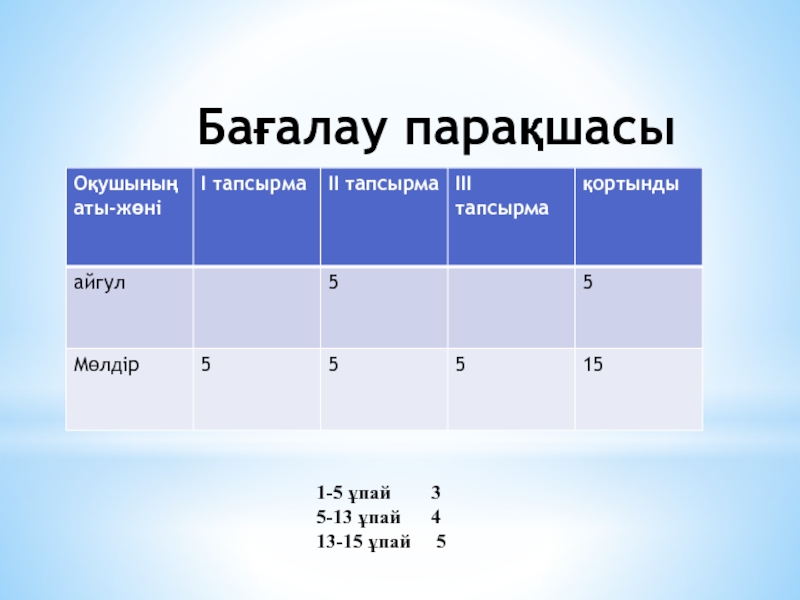 Бағалау парақшасы1-5 ұпай    35-13 ұпай   413-15 ұпай   5
