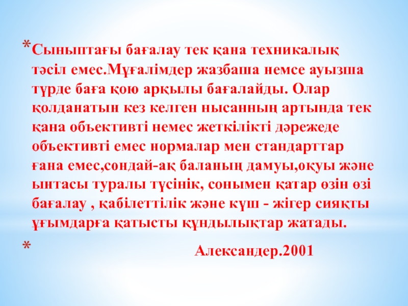 Слайд 3Сыныптағы бағалау тек қана техникалық тәсіл емес.Мұғалімдер жазбаша немсе ауызша