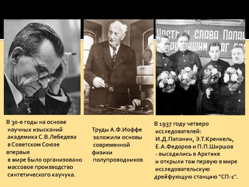 В начале 30-х годов началось освоение Арктики. В 1937 г. экипаж летчиков во главе с В.П. Чкаловым совершил первый в мире беспосадочный полет через Северный полюс из СССР в США,