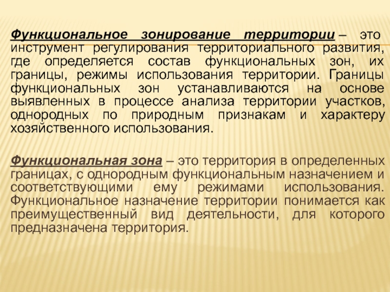 Слайд 7Функциональное зонирование территории – это инструмент регулирования территориального развития, где определяется