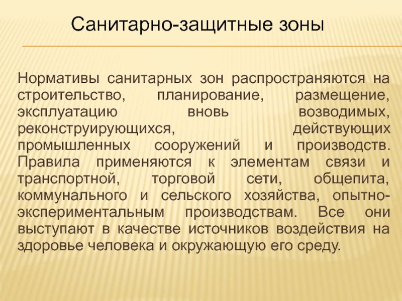 Нормативы санитарных зон распространяются на строительство, планирование, размещение, эксплуатацию