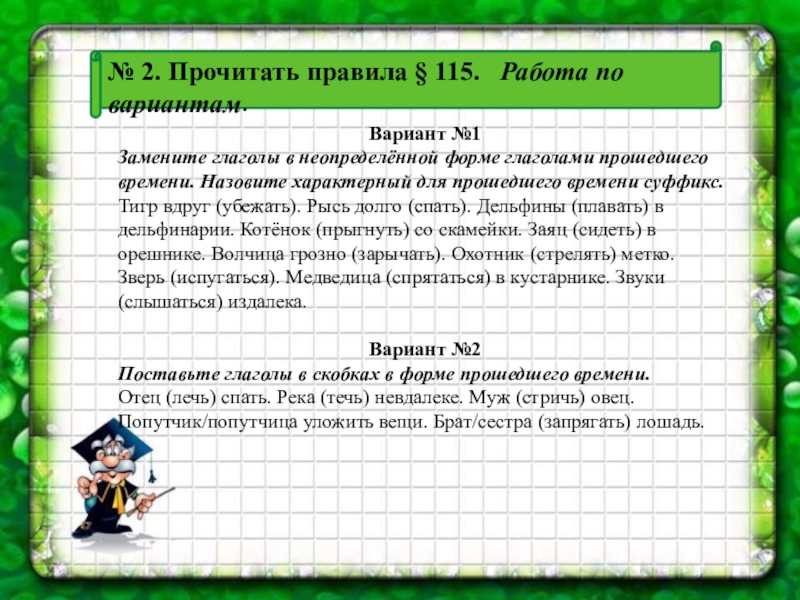 Слайд 17№ 2. Прочитать правила § 115. Работа по вариантам.