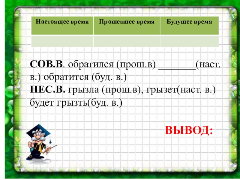 Слайд 15СОВ.В. обратился (прош.в) _______(наст. в.) обратится (буд. в.)