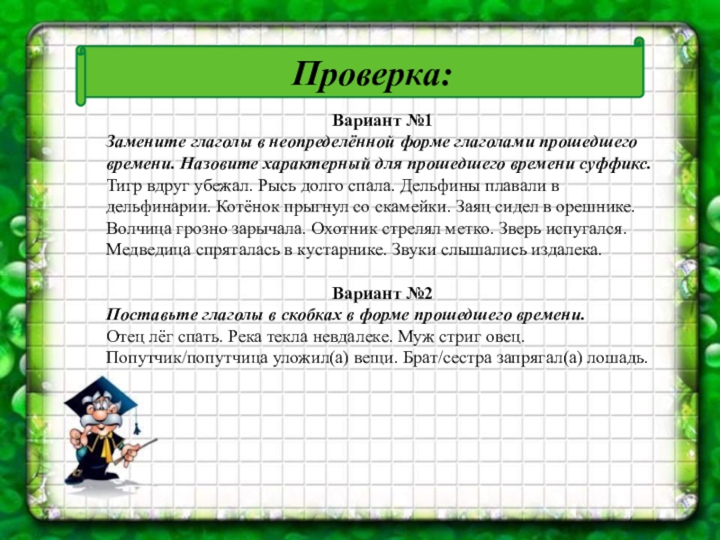 Замените глаголы в неопределённой форме глаголами прошедшего времени.