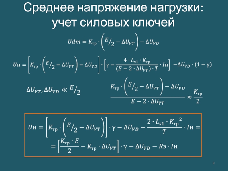 Слайд 8Среднее напряжение нагрузки: учет силовых ключей