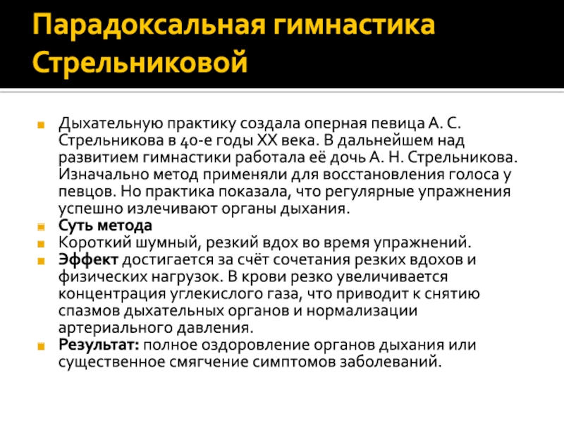 Слайд 7Парадоксальная гимнастика Стрельниковой