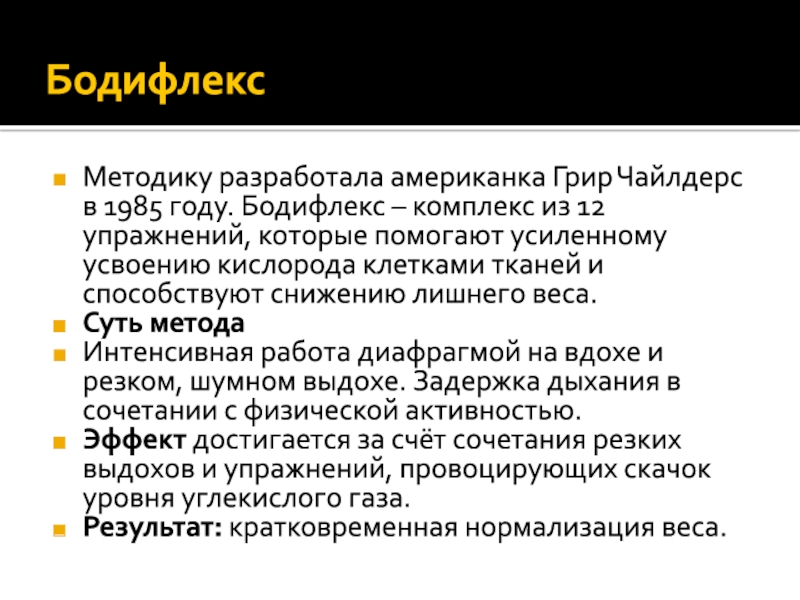Методику разработала американка Грир Чайлдерс в 1985 году. Бодифлекс –