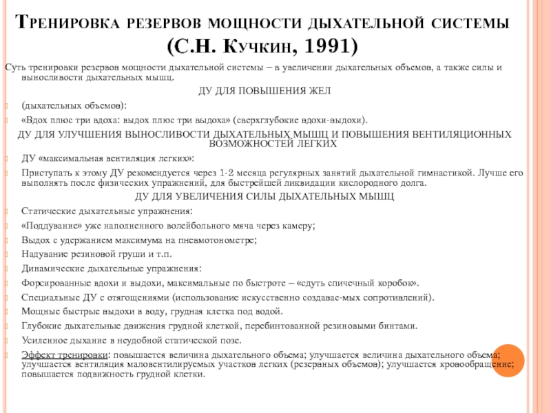 ДУ для повышения ЖЕЛ (сверхглубокое дыхание – «вдох + 3 вдоха. Выдох + 3 выдоха»);