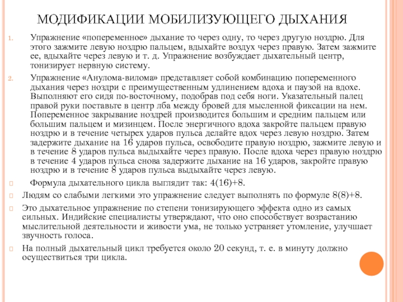 Слайд 7МОДИФИКАЦИИ МОБИЛИЗУЮЩЕГО ДЫХАНИЯ