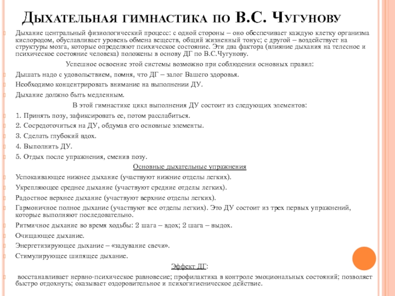 дыхание по В.Чугунову (энергетизирующее дыхание);