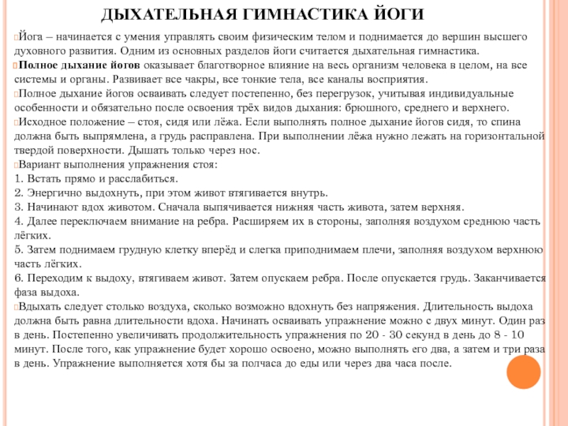 Слайд 4ДЫХАТЕЛЬНАЯ ГИМНАСТИКА ЙОГИ