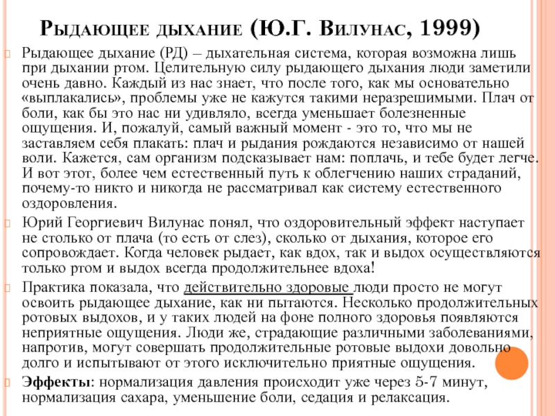 и оздоровительный результат методики рыдающего дыхания проявляется при: