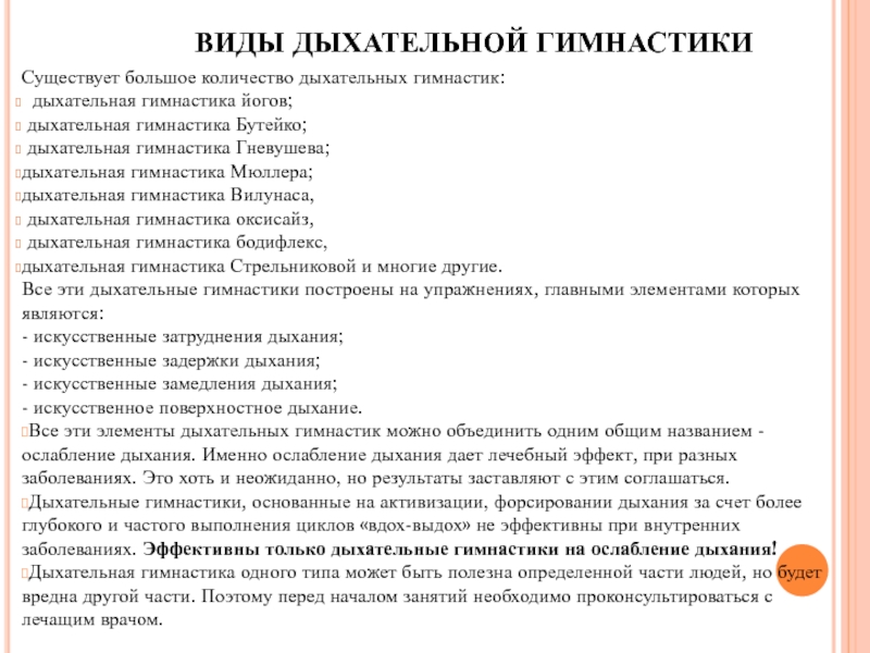 Слайд 2ВИДЫ ДЫХАТЕЛЬНОЙ ГИМНАСТИКИ