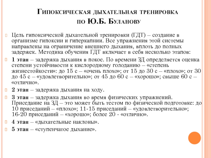 гипоксическая дыхательная тренировка (ГДТ) по Ю.Буланову;