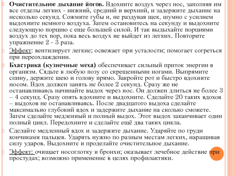 Слайд 5Очистительное дыхание йогов. Вдохните воздух через нос, заполняя им все