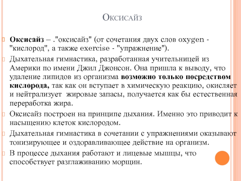 Оксисайз – ."оксисайз" (от сочетания двух слов oxygen - "кислород",