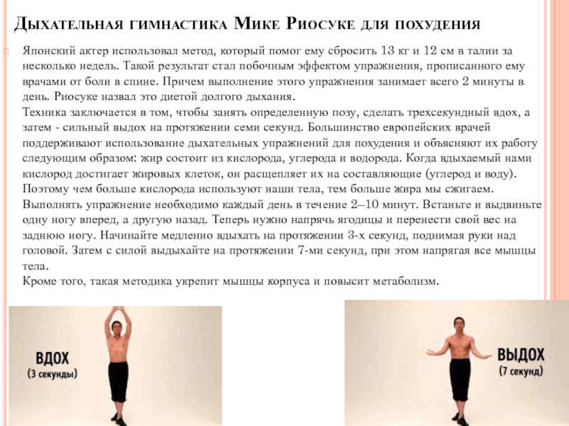 Слайд 37Дыхательная гимнастика Мике Риосуке для похудения