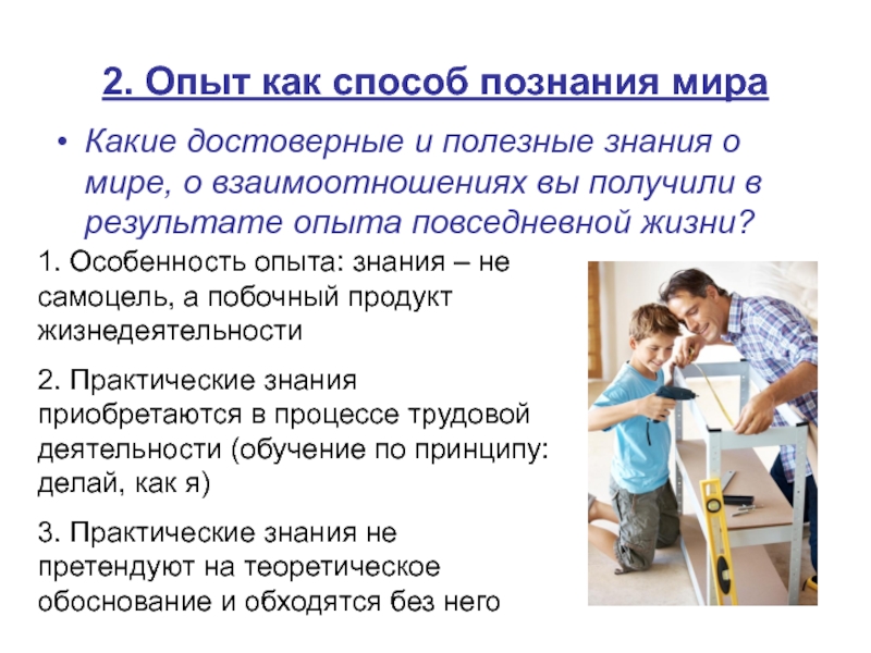 1. Особенность опыта: знания – не самоцель, а побочный продукт жизнедеятельности