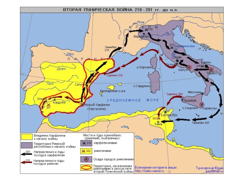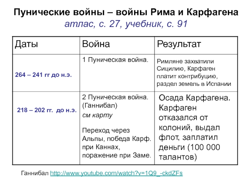 Переход через Альпы, победа Карф. при Каннах, поражение при Заме.