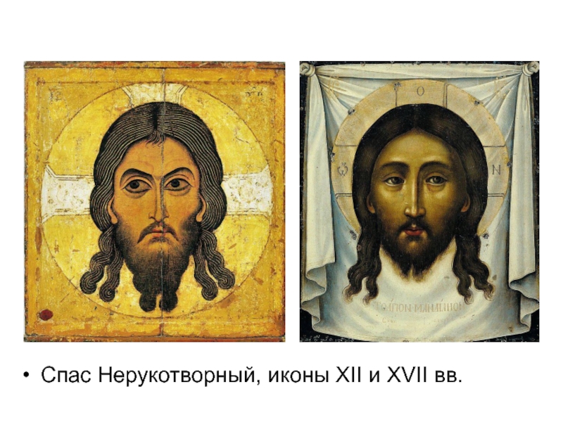 Слайд 19Спас Нерукотворный, иконы XII и XVII вв.