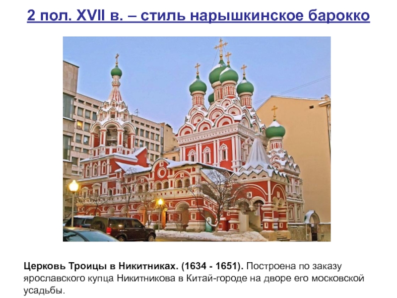 Слайд 11Церковь Троицы в Никитниках. (1634 - 1651). Построена по заказу