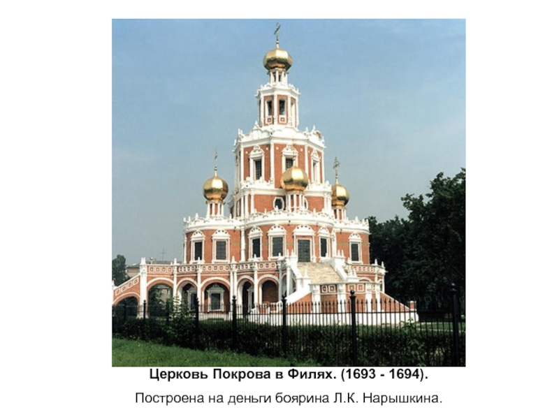 Слайд 12Церковь Покрова в Филях. (1693 - 1694).
