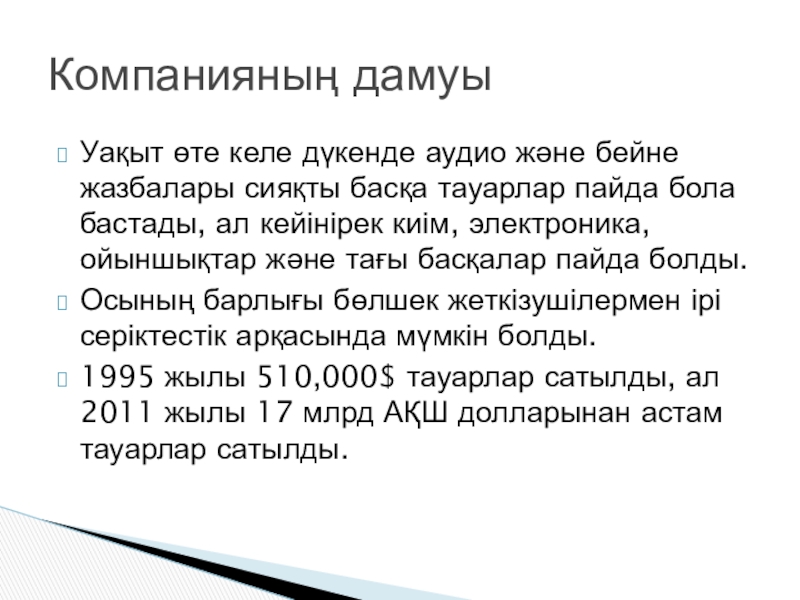 Компанияның дамуы