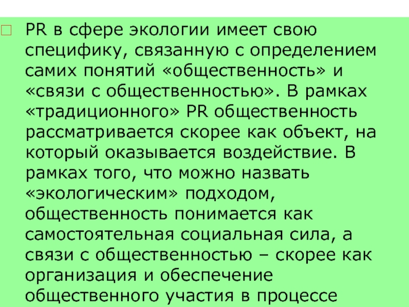 Слайд 14PR в сфере экологии имеет свою специфику, связанную с определением