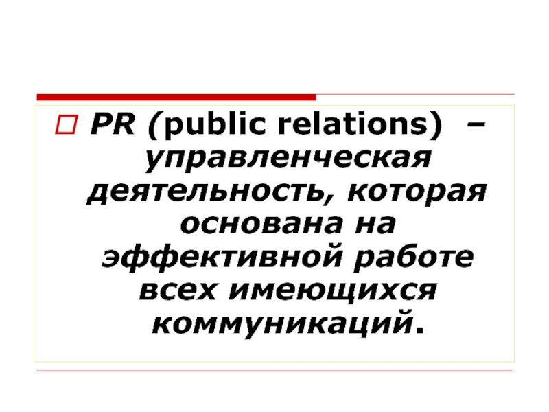 Слайд 3PR (public relations) – управленческая деятельность, которая основана на эффективной