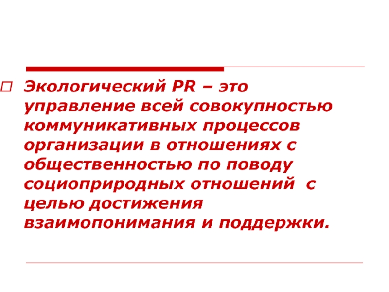 Слайд 13Экологический PR – это управление всей совокупностью коммуникативных процессов организации