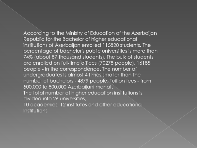 Слайд 15According to the Ministry of Education of the Azerbaijan Republic