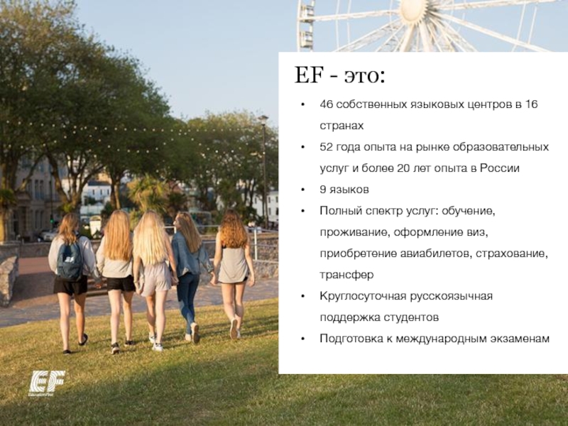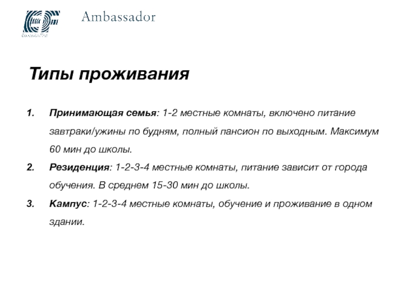 Полный спектр услуг: обучение, проживание, оформление виз, приобретение авиабилетов, страхование, трансфер