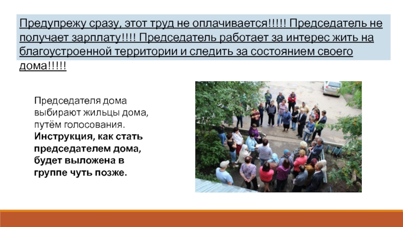 Председателя дома выбирают жильцы дома, путём голосования. Инструкция, как стать председателем дома, будет выложена в группе чуть позже.