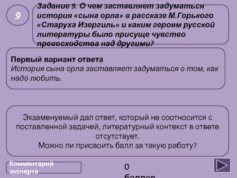 Задание 9. О чем заставляет задуматься история «сына орла» в рассказе М.Горького «Старуха Изергиль» и каким героям русской литературы было присуще чувство превосходства над другими?