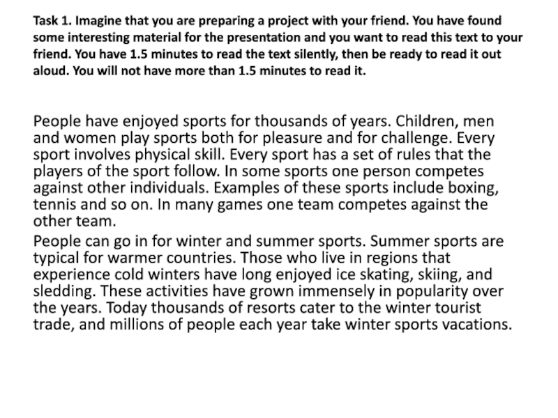 text to your friend. You have 1.5 minutes to read the text silently, then be ready to read it out aloud. You will not have more than 1.5 minutes to read it.