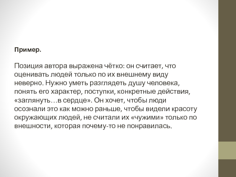 Позиция автора выражена чётко: он считает, что оценивать людей только