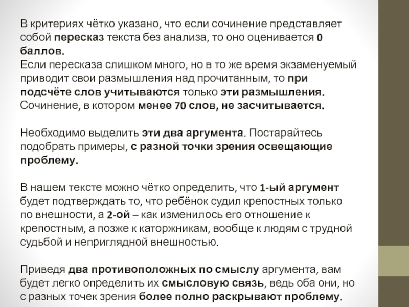Слайд 9В критериях чётко указано, что если сочинение представляет собой пересказ