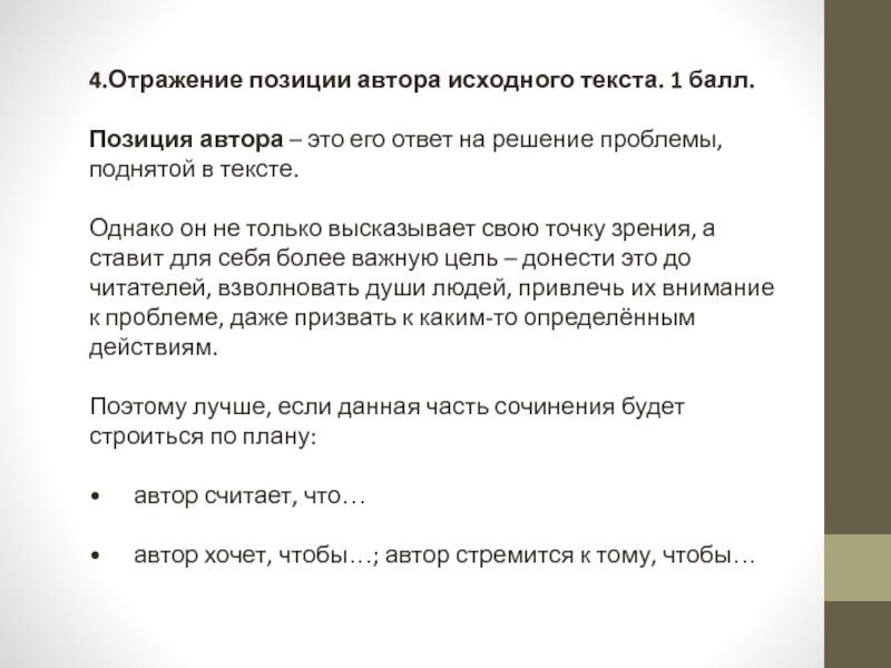 Слайд 124.Отражение позиции автора исходного текста. 1 балл.