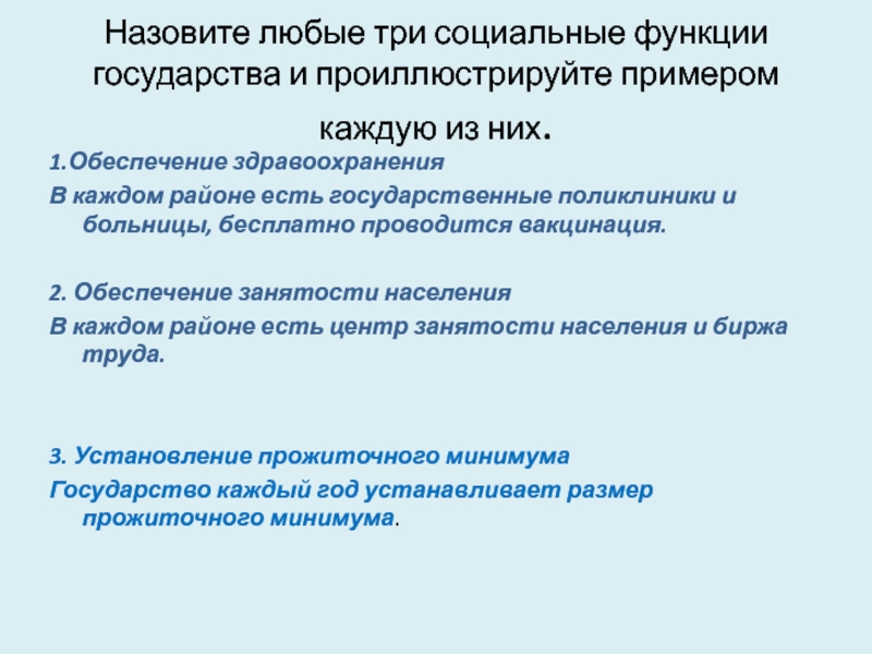 Слайд 46Назовите любые три социальные функции государства и проиллюстрируйте примером каждую