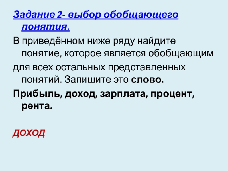 Слайд 16Задание 2- выбор обобщающего понятия.