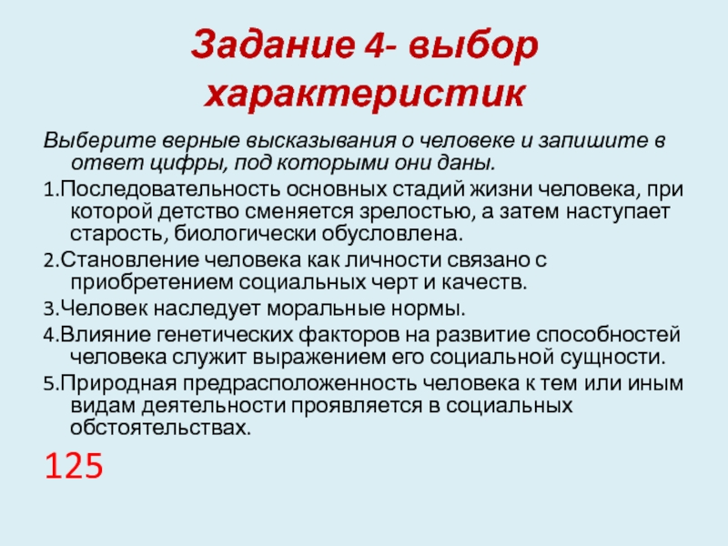 Выберите верные высказывания о человеке и запишите