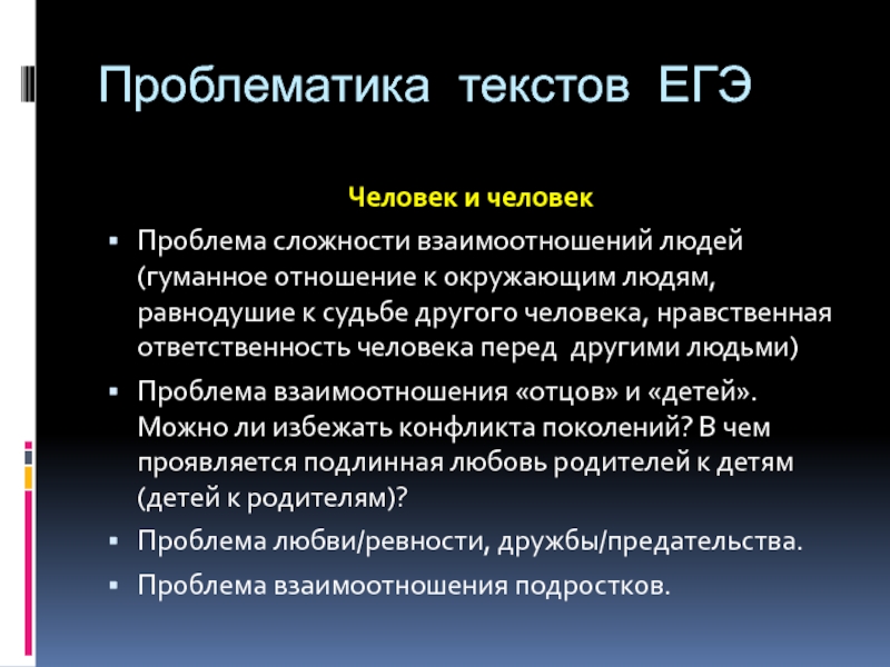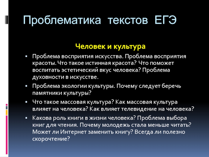 Слайд 7Проблематика текстов ЕГЭ