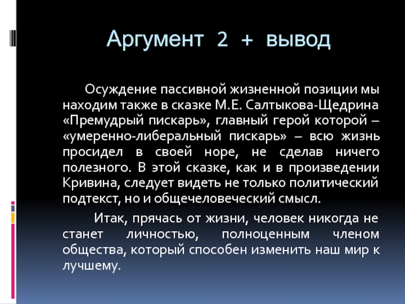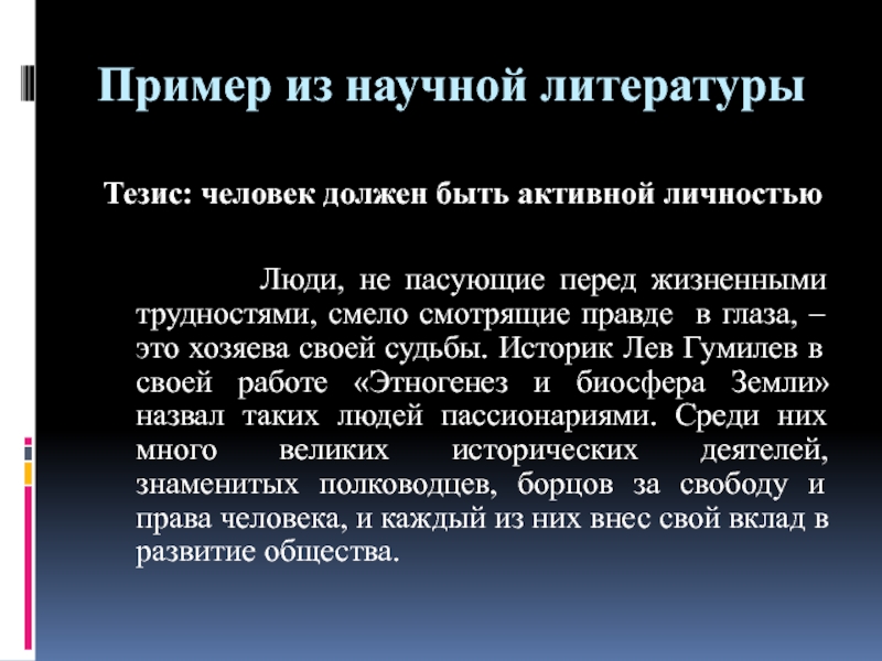 Тезис: человек должен быть активной личностью