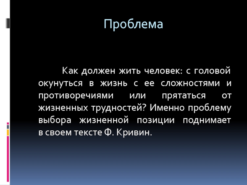 жизнь с ее сложностями и противоречиями или прятаться от жизненных трудностей? Именно проблему выбора жизненной позиции поднимает в своем тексте Ф. Кривин.