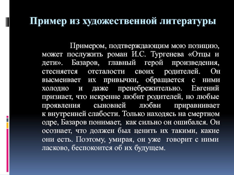 Проблема взаимоотношения «отцов» и «детей». Можно ли избежать конфликта поколений? В чем проявляется подлинная любовь родителей к детям (детей к родителям)?