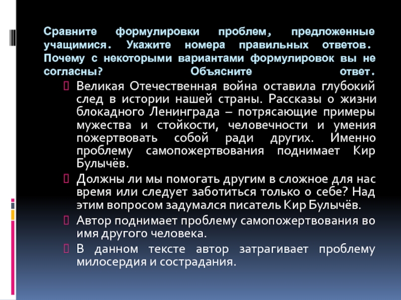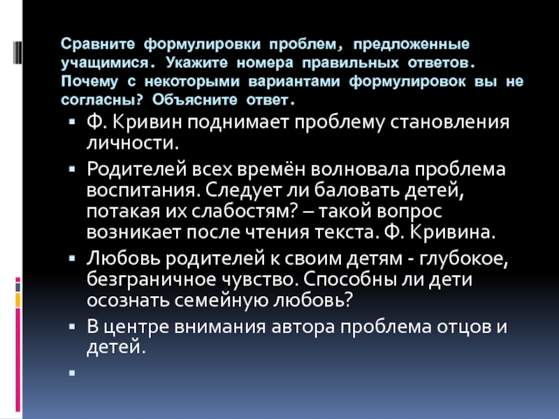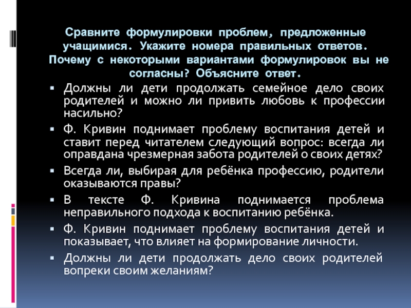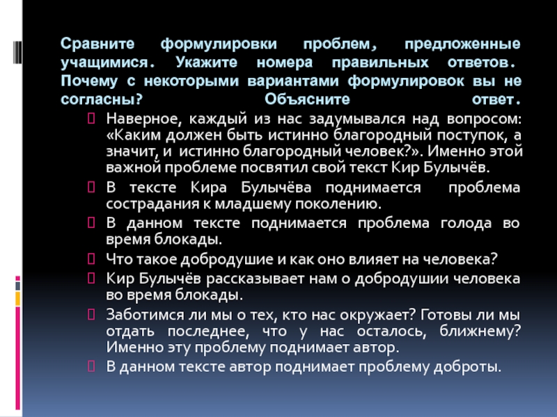 Слайд 35Сравните формулировки проблем, предложенные учащимися. Укажите номера правильных ответов. Почему