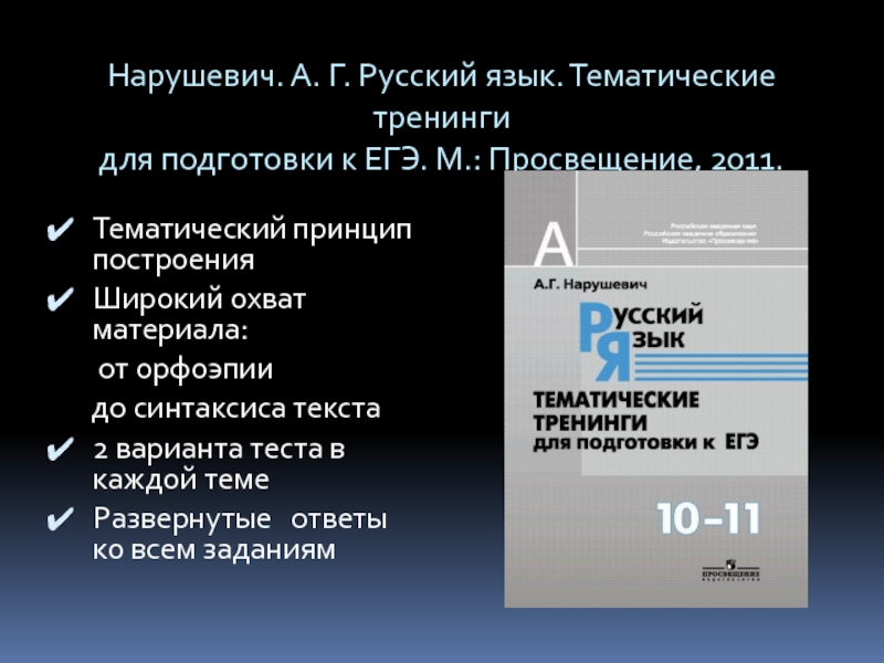 Слайд 76Нарушевич. А. Г. Русский язык. Тематические тренинги