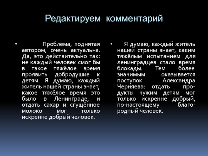 рассуждения, замечания по поводу того, как автор раскрывает проблему.